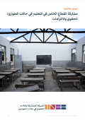 في السنوات الأخيرة، وفي ضوء النقص في التمويل العام والحاجة إلى استجابات عاجلة، أصبحت الجهات الفاعلة الخاصة تشارك بشكل متزايد في مختلف جوانب البرمجة التعليمية من أجل التعليم في حالات الطوارئ. غير أن هذه التدابير يمكن أن تؤدي إلى حدوث توتر بين مشاركة القطاع الخاص والاستجابة الإنسانية في مجال التعليم، الأمر الذي يحتاج إلى معالجة ويتطلب بدوره مزيدًا من التنسيق والمناصرة والاهتمام. ويستكشف هذا الموجز بعض هذا التوتر ويقدم توصيات لدعم الأولوية للتعليم العام الآمن والمنصف والجيد لجميع الأطفال والشباب المتضررين من الأزمات.