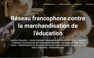 Le Comité Syndical Francophone de l'Éducation et de la Formation (CSFEF), la Coalition des Organisations en SYnergie pour la Défense de l'Education Publique (COSYDEP), la Coalition Education, la FICEMEA, la Global Initiative for Economic, Social and Cultural Rights (GI-ESCR), l’Initiative pour le droit à l’éducation (RTE), et Solidarité Laïque, réunis en réseau, ont décidé de se mobiliser contre la marchandisation de l’éducation dans l’espace francophone. Cette mobilisation fait suite à une croissance sans précédent des acteurs privés dans l’éducation au niveau international, notamment dans les pays à faibles revenus. L’investissement à grande échelle d’entreprises multinationales, entre autres, dans le marché très lucratif de l’éducation est sur le point de transformer totalement des systèmes éducatifs déjà fragiles. L’impact de ces phénomènes en termes de qualité des contenus éducatifs, de ségrégation territoriale et d’inégalités sociales, et plus généralement de réalisation des droits de l’Homme, en fait un défi majeur pour les acteurs et les défenseurs du droit à l’éducation de Tous tout au long de la vie. Cette tendance a été dénoncée par plusieurs rapports, résolutions, et recommandations de l’ONU, ainsi que la Commission Africaine des droits de l’Homme.