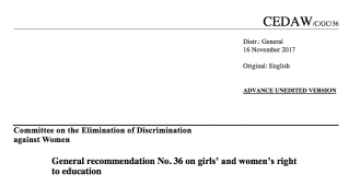 Cette recommandation générale fournit une interprétation faisant autorité de l’article 10 sur le droit à l’éducation de la Convention sur l’élimination de toutes les formes de discrimination à l’égard des femmes.