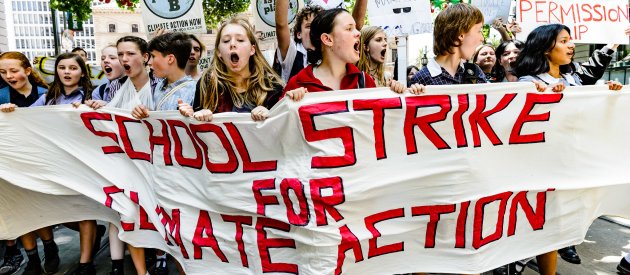 Student protest in France. The banner reads: 'Studying is a right, not a priviledge'