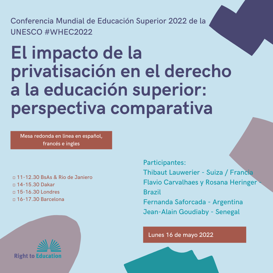 In addition, a knowledge document on the right to higher education in the French context, with a focus on territorial inequalities and privatisation, will be presented.